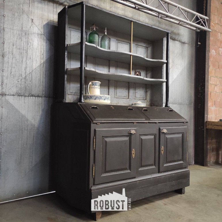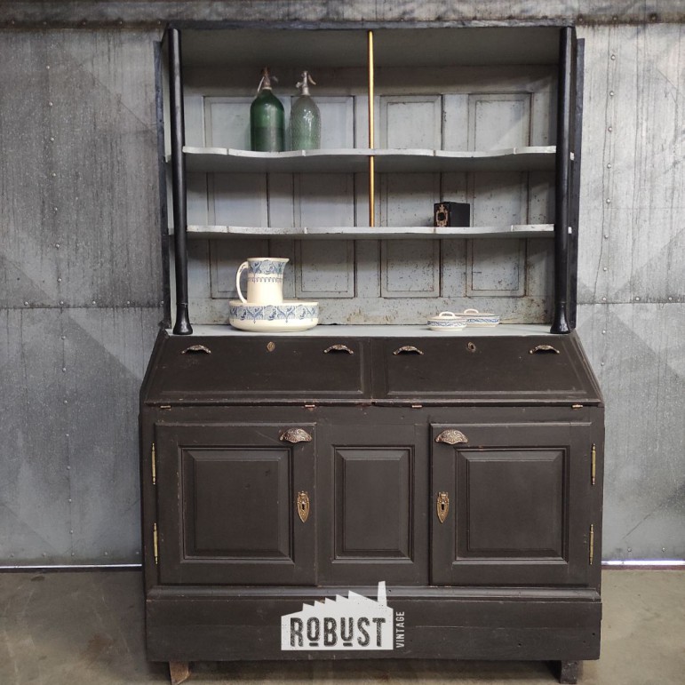 Sommige meubels hebben honderd jaar achter de rug en staan er nog altijd stevig bij. Deze grutterskast uit de jaren 1910 is daar een prachtig voorbeeld van. Een royale buffetkast (165x83x220 cm) met veel bergruimte én sierlijke details die haar tot een echte blikvanger maken.