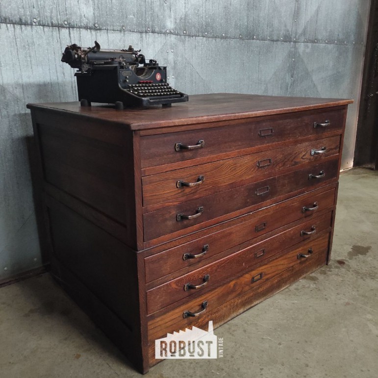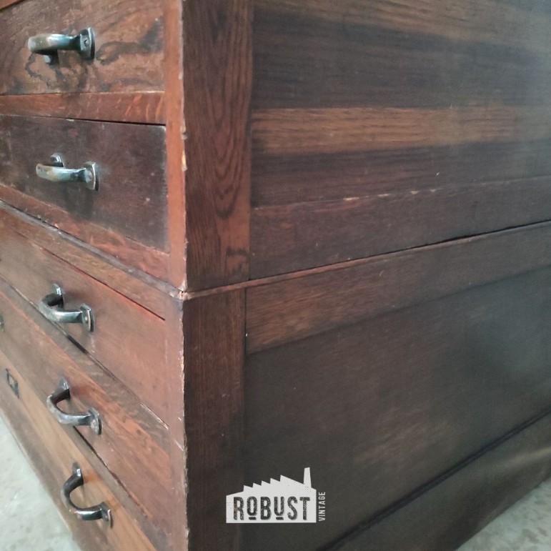 Vintage tekeningenkast / architectenkast – houten ladekast voor grote plannen en kunstwerken