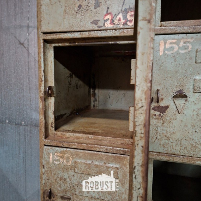 Door haar sobere industriële vorm en zachte kleur werkt deze lockerkast / vakkenkast / metalen opbergkast verrassend goed in verschillende ruimtes: als halmeubel, opbergkast in een atelier, kast in een kinderkamer, of zelfs in een winkel of studio waar orde en uitstraling samen mogen gaan.