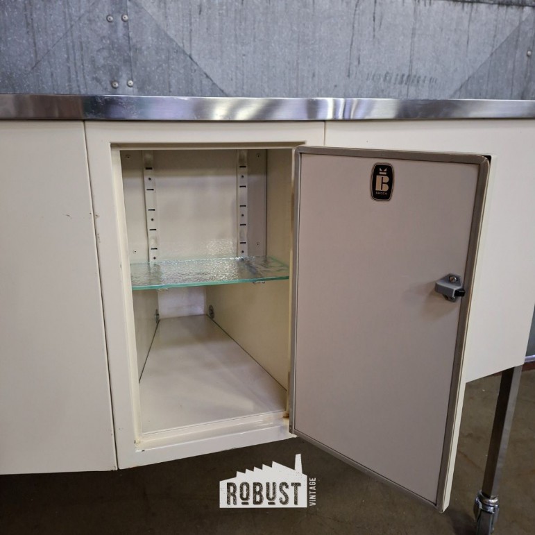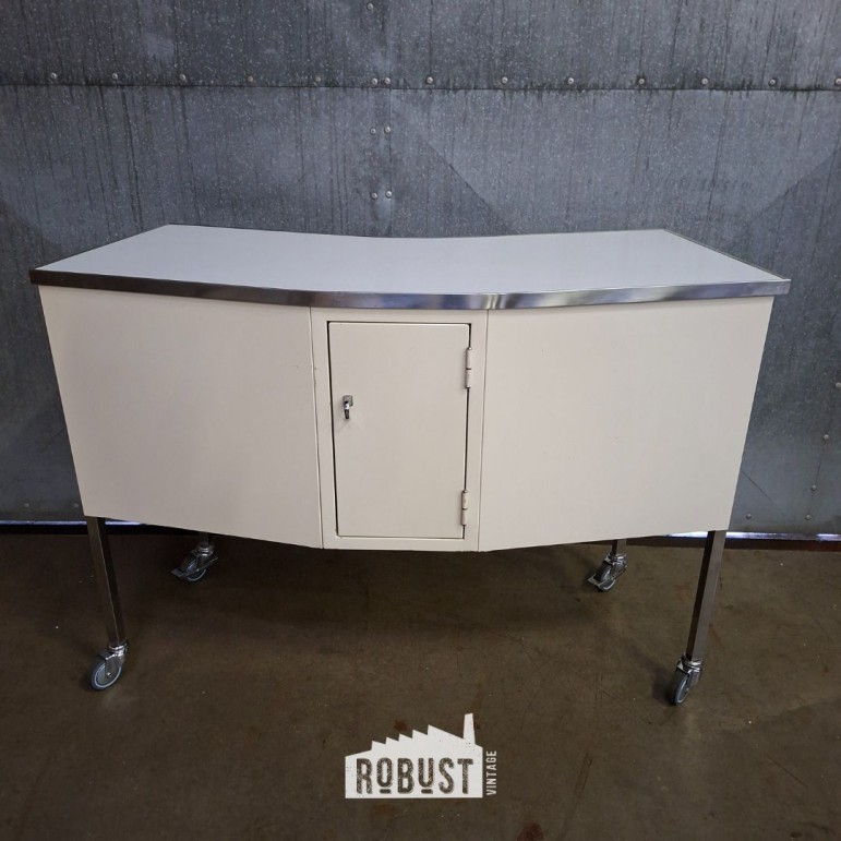 Dit BAISCH tandartskastje op wielen is een uitzonderlijk mooi bewaard stuk uit de jaren 1950. Midcentury in zijn zuiverste vorm: functioneel ontworpen, strak van lijn, maar met subtiele details die het geheel verfijnd maken. En in deze staat kom je ze zelden tegen.