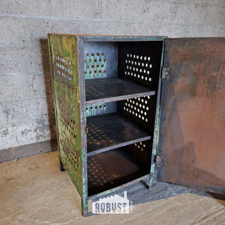 Dankzij het compacte formaat past dit kastje perfect als industrieel nachtkastje, halmeubel, metalen kast in een atelier, DDR locker in een winkelruimte, of als schoenenkast bij de achterdeur. Klein genoeg om overal te passen, sterk genoeg om karakter toe te voegen.