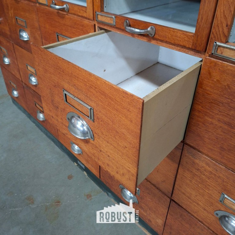 Een sterke keuze voor wie een grote ladekast, winkelinrichting met karakter of een praktische opbergkast voor atelier, boetiek of werkruimte zoekt.