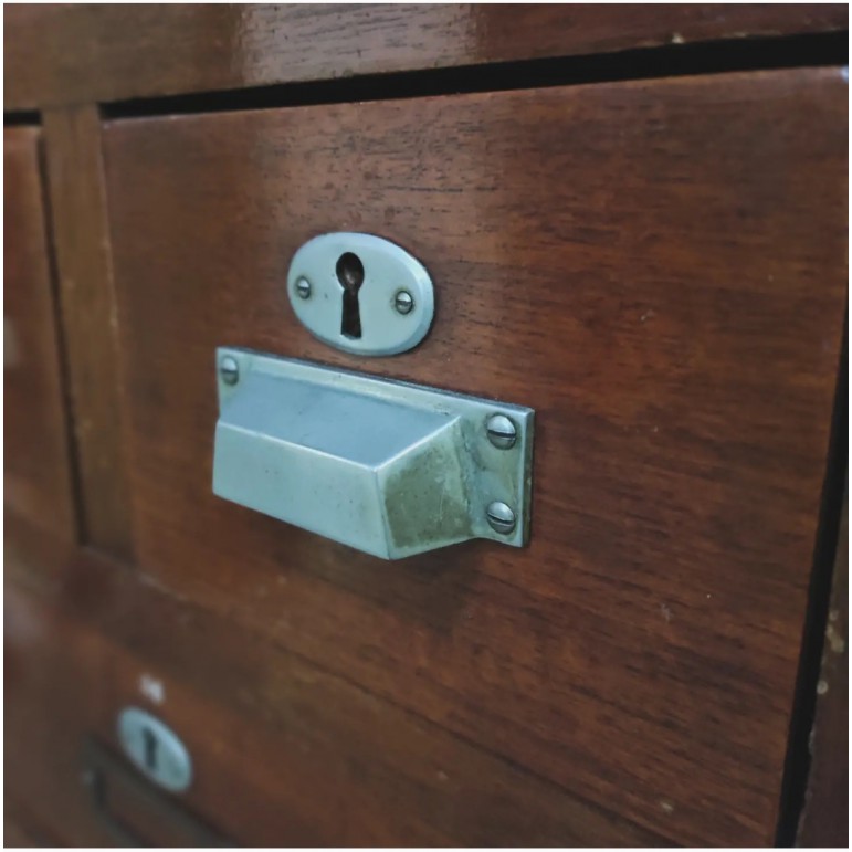 Prachtige oude archiefkast met veel opbergmogelijkheden! Fijne laatjes, kleine laatjes, grote lades... Voor elk wat wils.