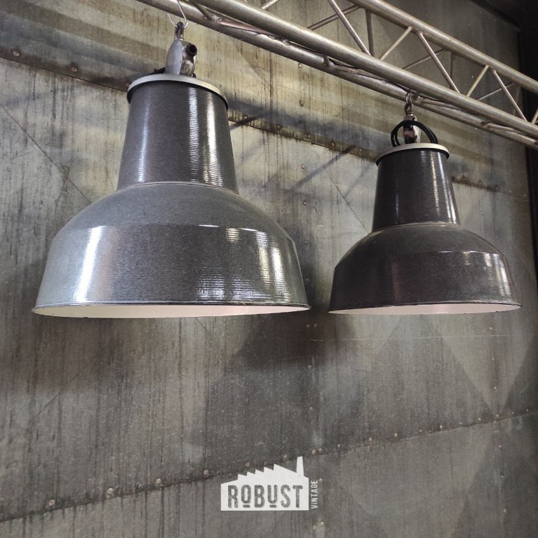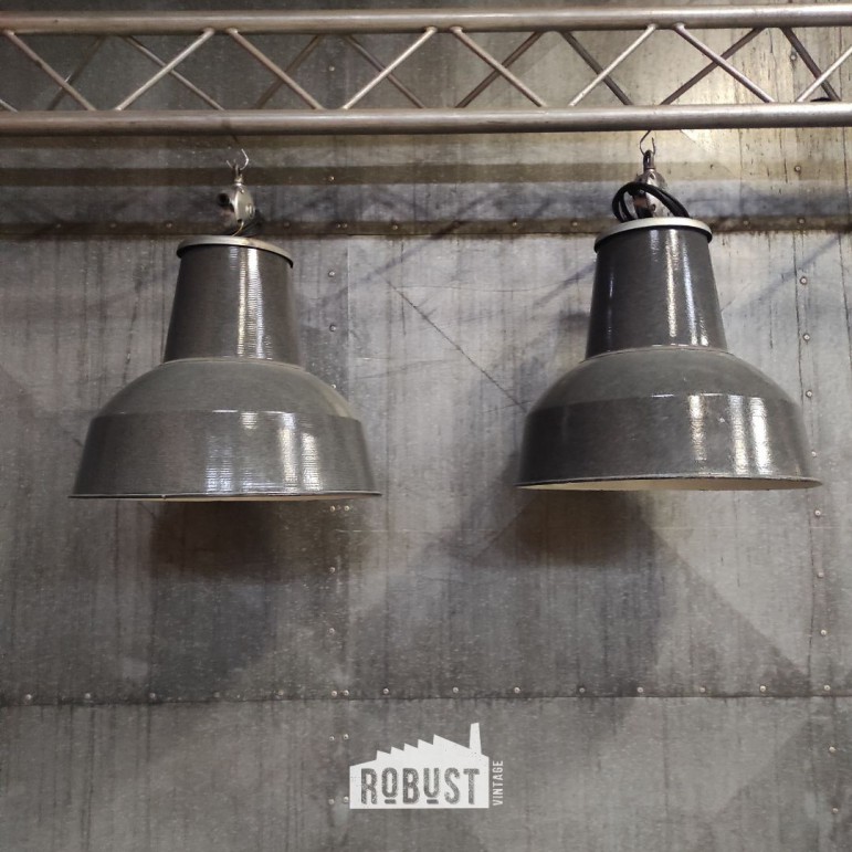 Grote grijze industriële lampen – emaillen fabriekslampen Ø61 cm