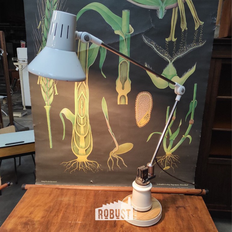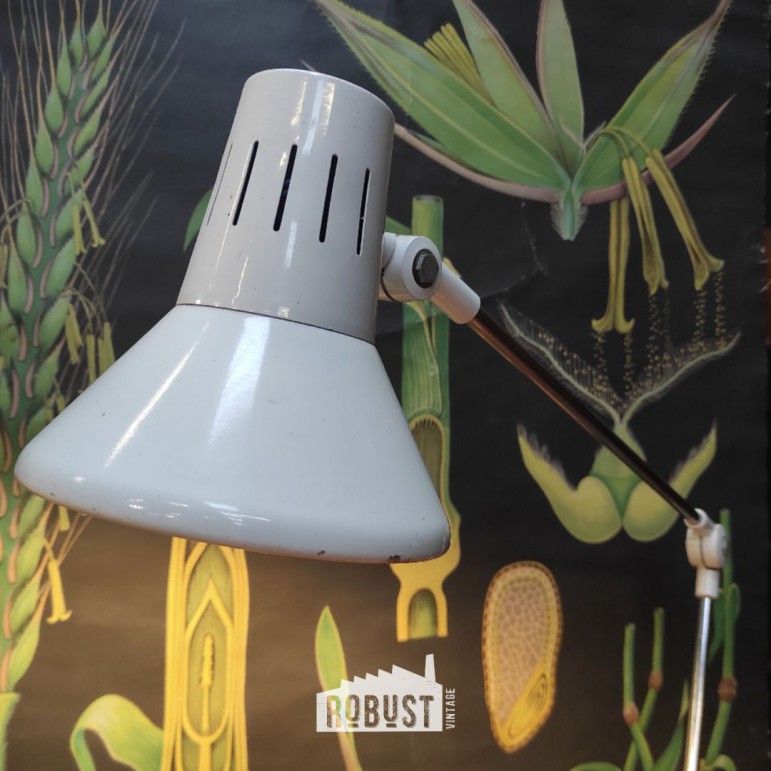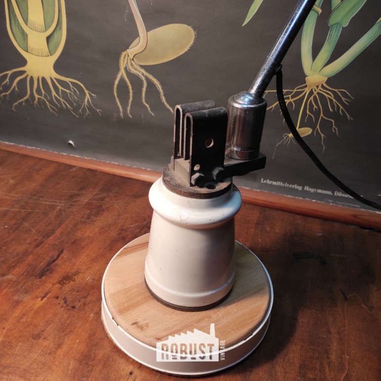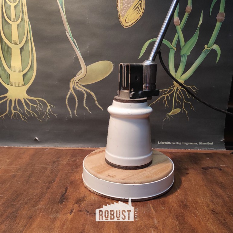 Deze vintage ziekenhuislamp is er eentje die meteen vertrouwen uitstraalt. Oorspronkelijk ontworpen om ziekenhuizen van helder, gericht licht te voorzien, gebouwd om dagelijks intensief te gebruiken. Vandaag krijgt ze een tweede leven als bureaulamp / werklicht / leeslamp met een uitgesproken, eerlijke uitstraling.