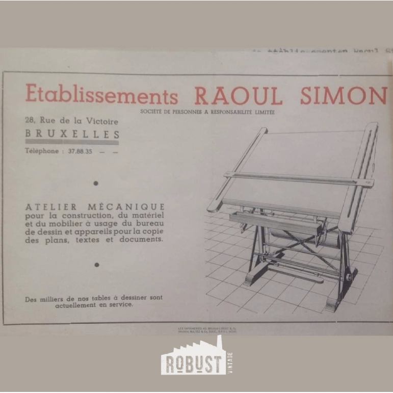 Een goede tekentafel voelt altijd een beetje als een partner-in-crime. Deze vintage tekentafel (van Raoul Simon?) is er zo eentje: degelijk, ingenieus gebouwd en gemaakt om jarenlang creatief werk te dragen.