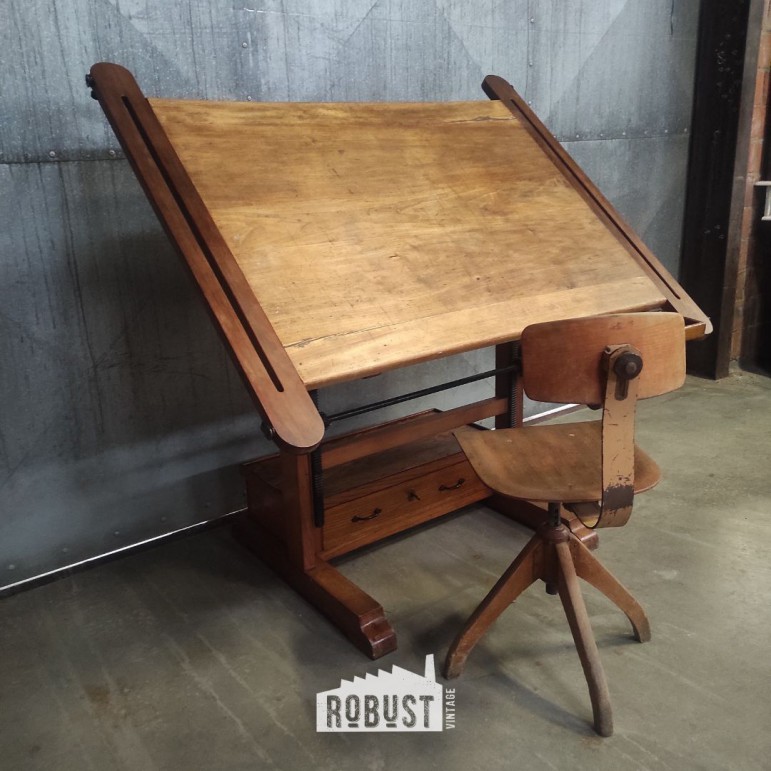 Vintage tekentafel Raoul Simon – houten architectentafel met verstelbaar blad
