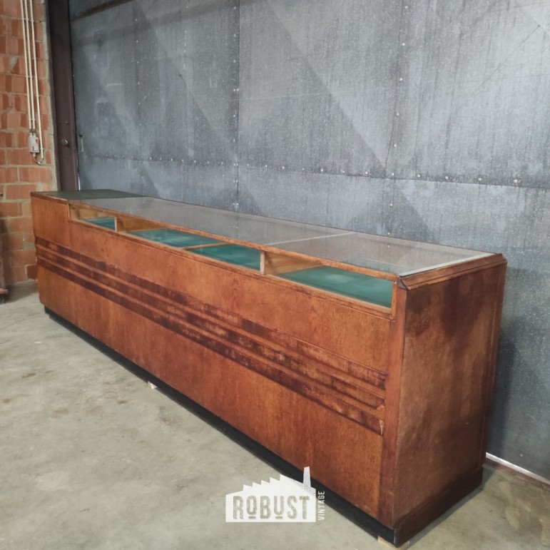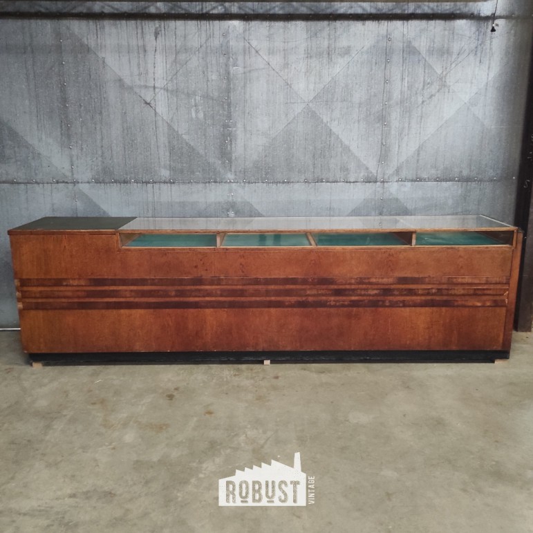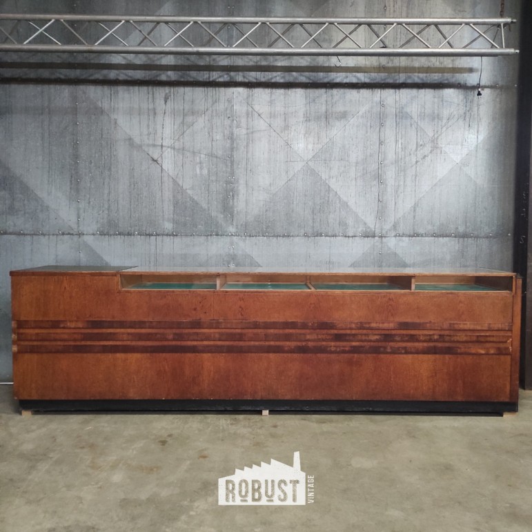Dit is een toonbank die meer is dan praktisch alleen – hij vertelt een verhaal en brengt meteen sfeer in elke ruimte. Of je hem inzet in een winkel of horecazaak als echte eyecatcher, of thuis als imposante dressoir of presentatiekast, hij maakt altijd indruk.