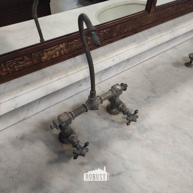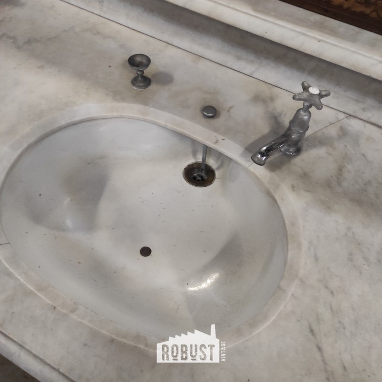 Twee originele wastafels – compleet met marmer en zeepkraan.