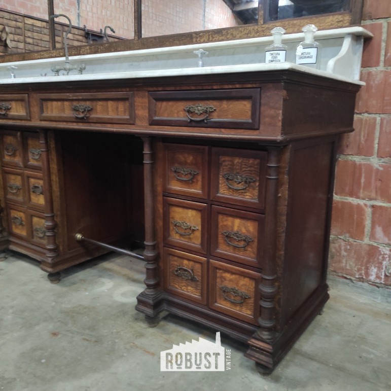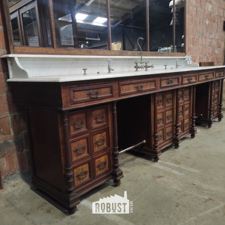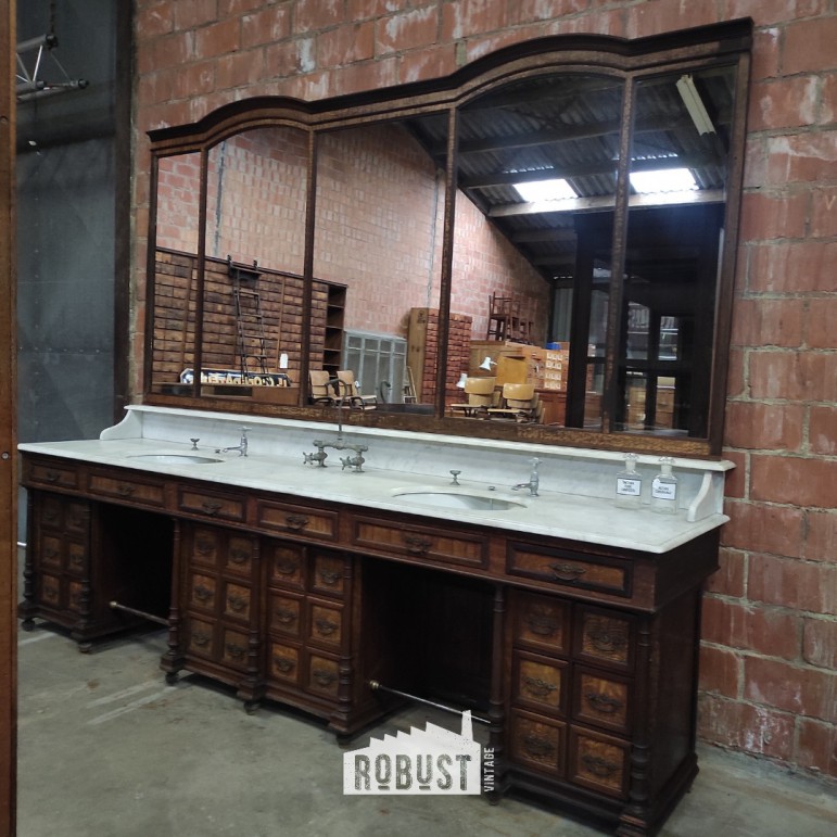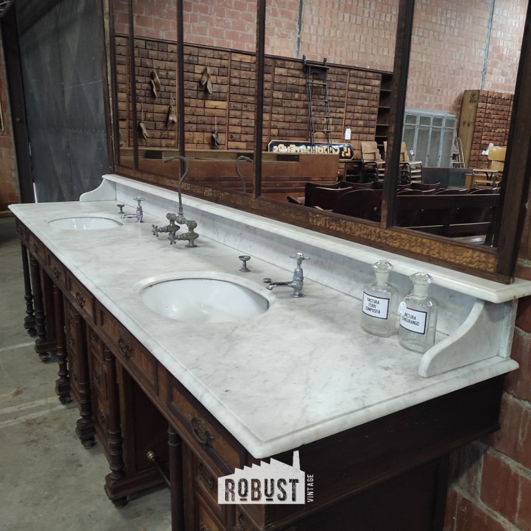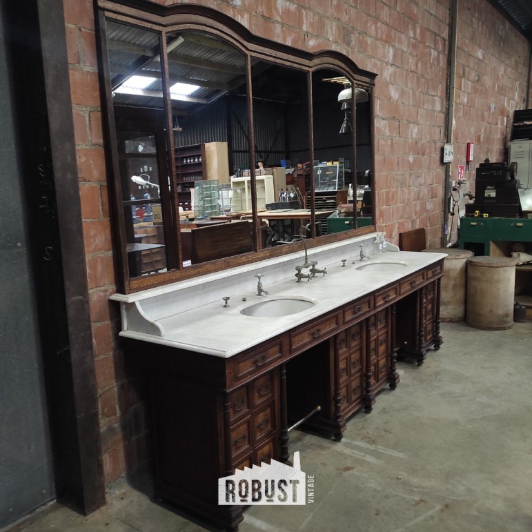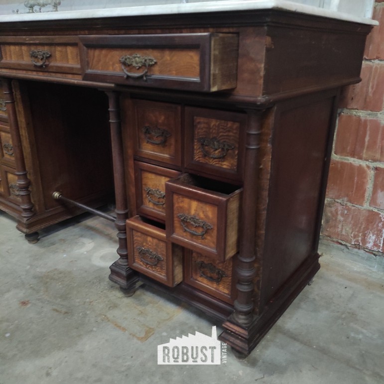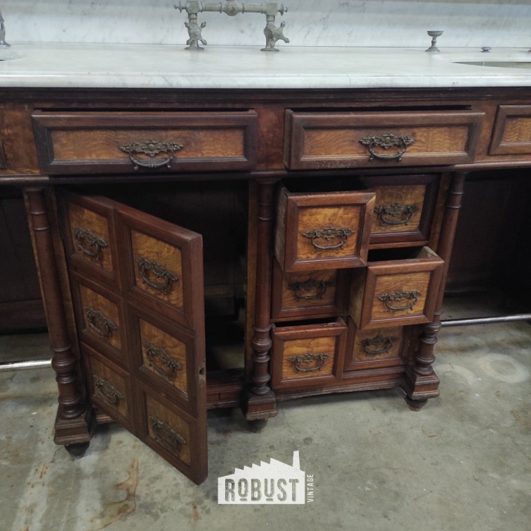 Authentiek jaren ’30 meubel – dubbele kappersopstelling met marmeren blad.