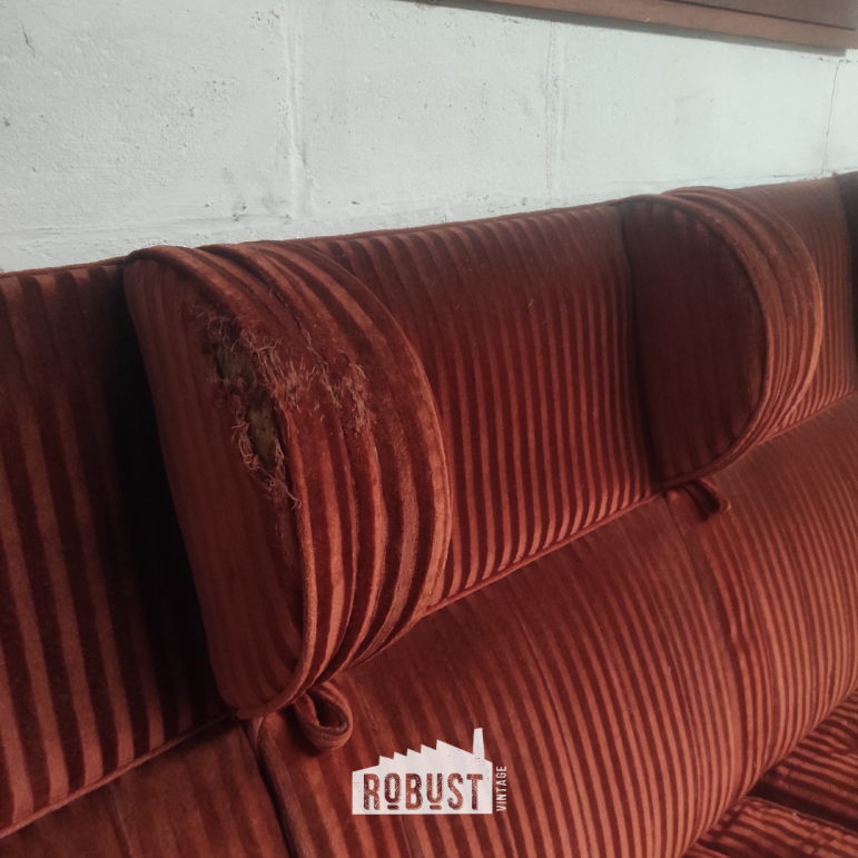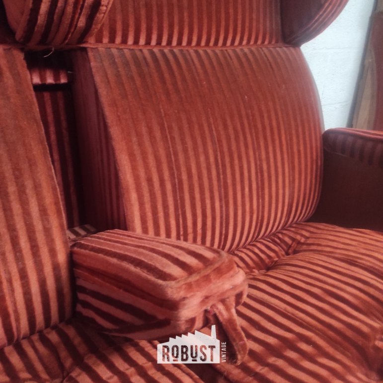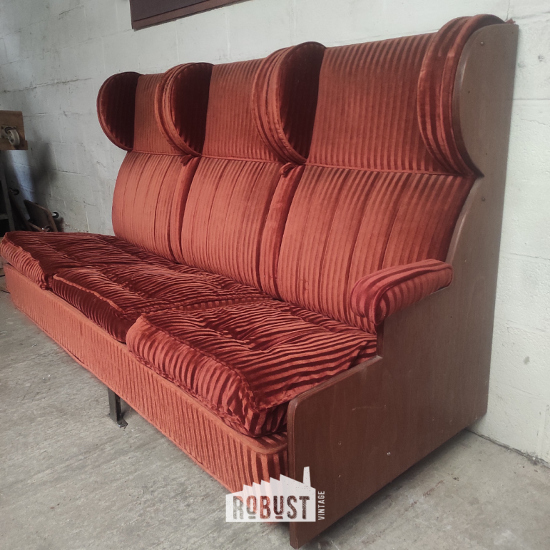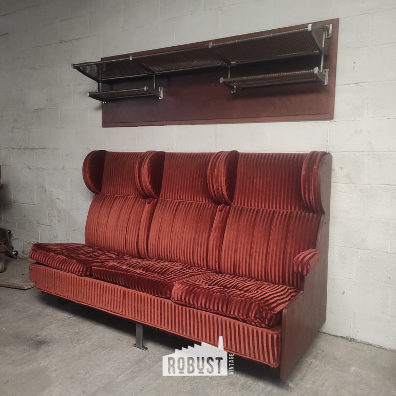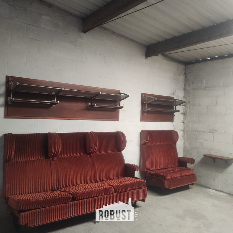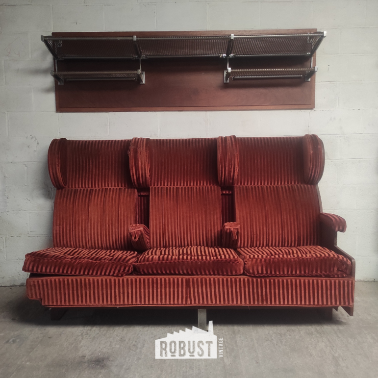 Een indrukwekkende 3-zit treinbank uit de jaren 1930, ontworpen door Henry Van de Velde voor de Belgische spoorwegen. Dit is zo’n stuk dat meteen een sfeer neerzet — niet luid, maar met een vanzelfsprekende aanwezigheid. Je ziet het vakmanschap in de stofferin, voelt de geschiedenis in de zitting en merkt dat dit ooit deel uitmaakte van iets groters.